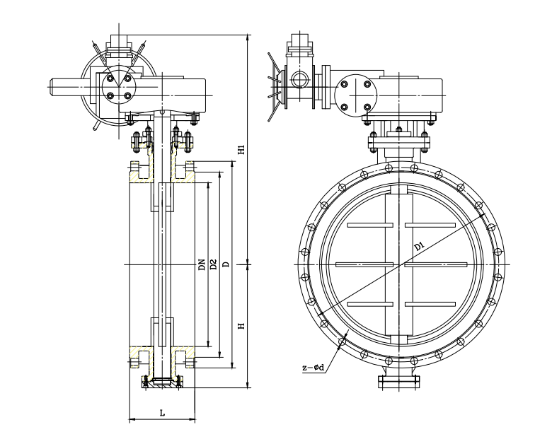 D941welectric Ventilation Butterfly Valve Main Shape Connection Dimensional unit:mm